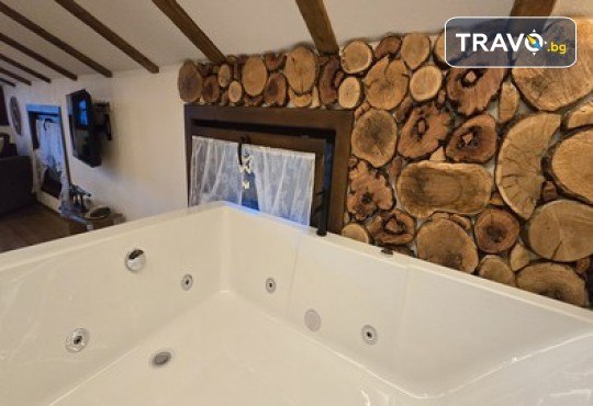 - • Хидромасажна вана в типичния за вилите стил, от която се открива гледка към Пирин;