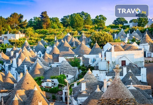Закуска. Отпътуване за Алберобело – най-добре запазеното градче в така наречената „земя на трулите”. Трулите са странни постройки от камък, строени „на сухо”, без хоросан, с конусовидни покриви, покрити със сиви варовикови плочи, които са характерни за областта между Алберобело, Фазано, Остуни и Мартина Франка. Някои от тях датират от етруската епоха. Алберобело е запазил 1400 трули, които покриват двете хълмчета, върху които е построено градчето и предлагат на посетителя един наистина необичаен пейзаж. Пристигане, разглеждане на Алберобело. Следобед – отпътуване за Бари. Разходка из стария град, посещение на базиликата „Св. Никола”, в която се съхраняват мощите на светеца. Вечерта – отпътуване с ферибот за Игуменица.
