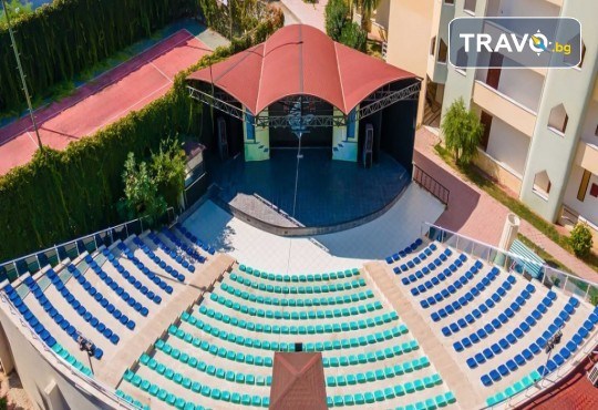 На територията на хотела: Хотелът разполага с основен ресторант, 3 бара, плувен басейн, детски басейн, водни пързалки, СПА център, сауна, турска баня, фитнес, тенис на маса, тенис на корт, водни спортове, анимация, конферентна зала.